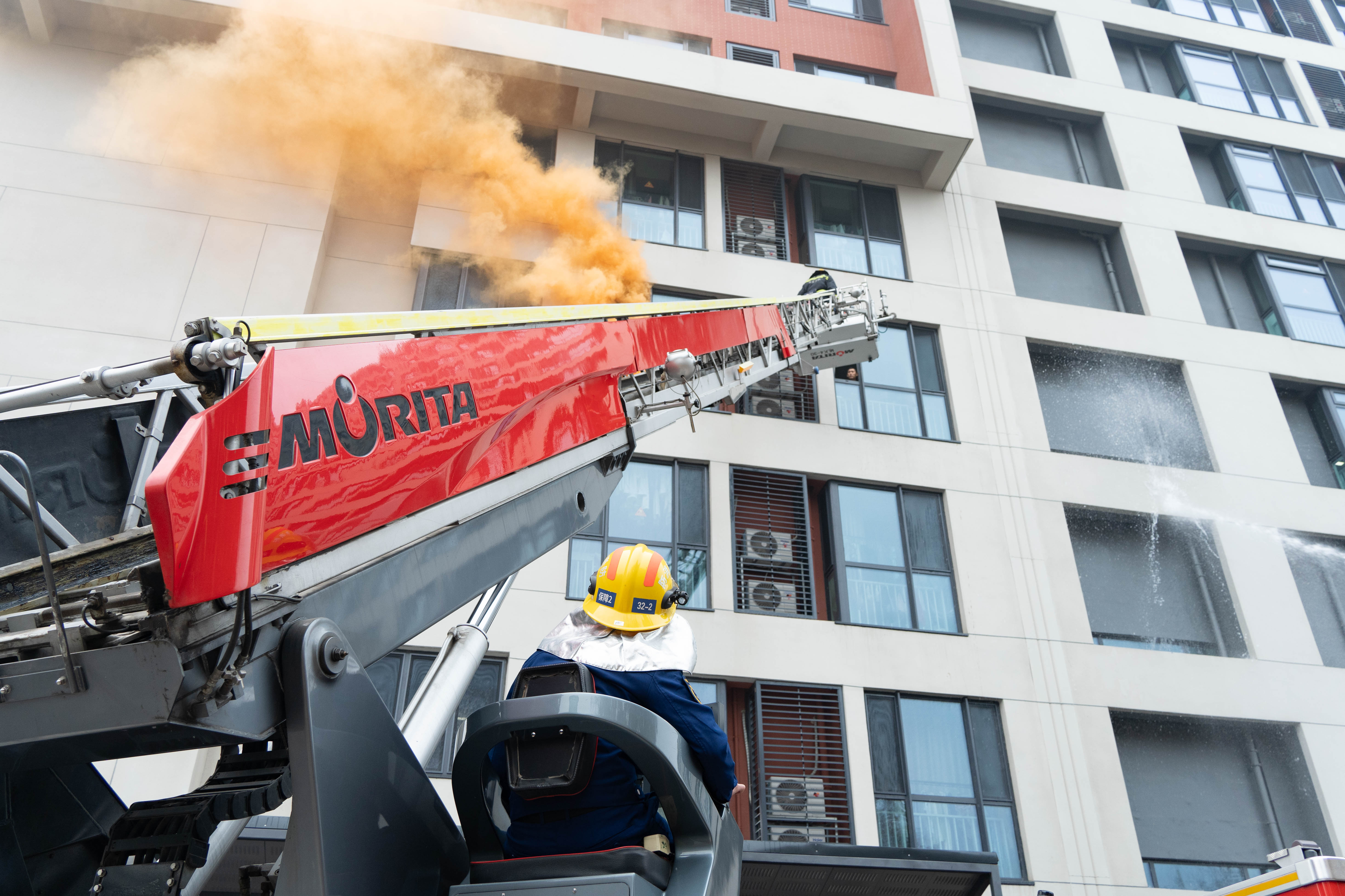 此次演练模拟学生公寓发生火情的真实场景,旨在检验学校应急响应流程、消防救援力量协同作战能力以及人员疏散预案的科学性和有效性。在核心应急处置环节,昌平永安救援支队的专业消防员们展示了精湛的救援技术与高效的作战能力。