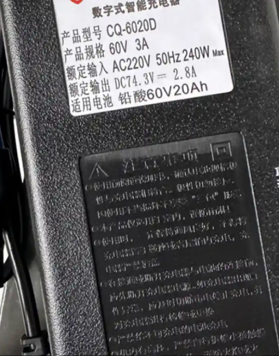 1.查看充电器标签:充电功率(W)≈输出电压(V)× 输出电流(A)以上图充电器参数为例,最大输出功率=74.3V* 2.8A ≈ 208W,可安全使用。